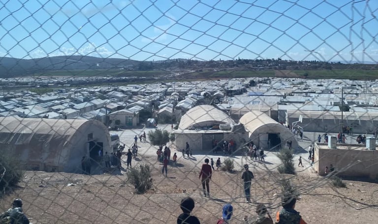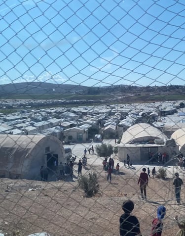 Children play at an internally displaced persons (IDP) camp in northern Syria, near the Turkish border. It reflects broader dynamics of displacement, protracted crisis, and the spatial governance of populations in conflict-affected borderlands.