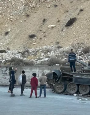 In the aftermath of the collapse of Assad regime, children climb an abandoned tank near the outskirts of Damascus. The scene captures a moment of transition, where remnants of military power become sites of play, curiosity, and uncertainty