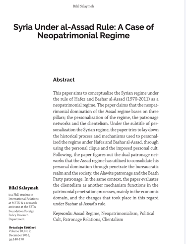 For over 13 years, I have been closely following, researching, and writing on the Syrian conflict. My work includes contributions to academic journal articles, book chapters, policy papers, and commentaries.