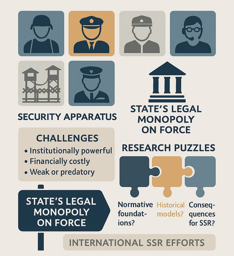 As a Postdoctoral Researcher on the multi-year project “State-building and the Global Practices of Security Sector Reform”, I contribute to collecting cross-national and longitudinal data on the scope, scale, duration, type and focus of security sector reform (SSR) projects worldwide, and engage in systematic analysis of the conditions or definitions of success and failure that could inform global SSR practices. The project questions the normative and conceptual foundations, and the historical experiences of the states and institutions that are taken as models of global SSR practices.