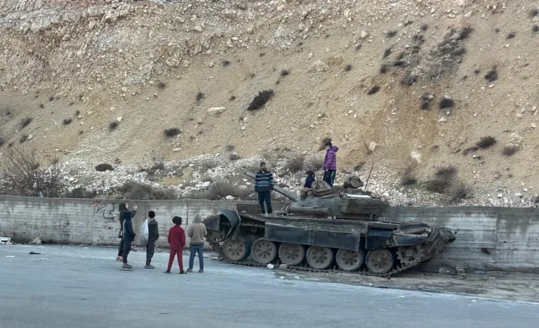 In the aftermath of the collapse of Assad regime, children climb an abandoned tank near the outskirts of Damascus. The scene captures a moment of transition, where remnants of military power become sites of play, curiosity, and uncertainty
